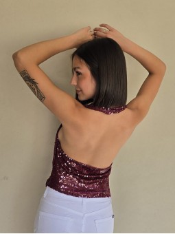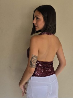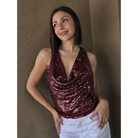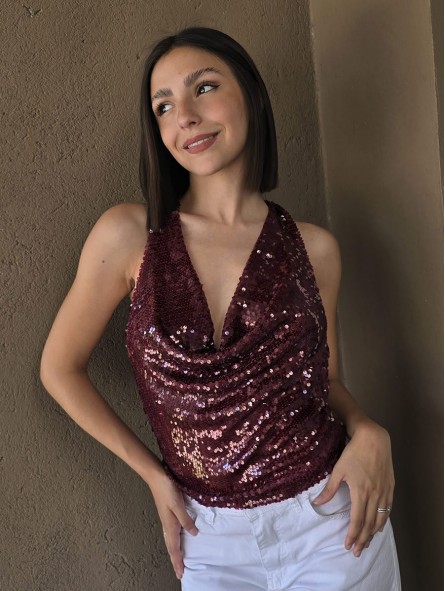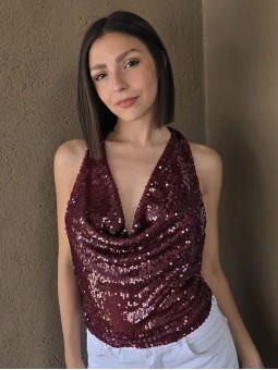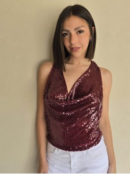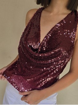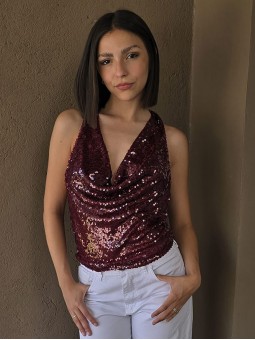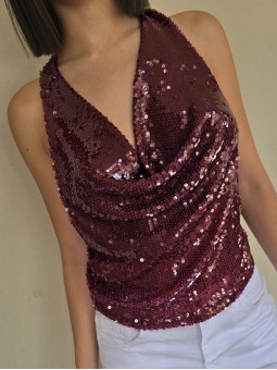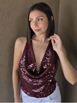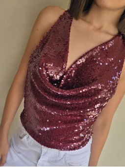 Top cuello buche de lentejuelas.