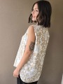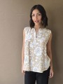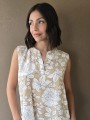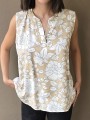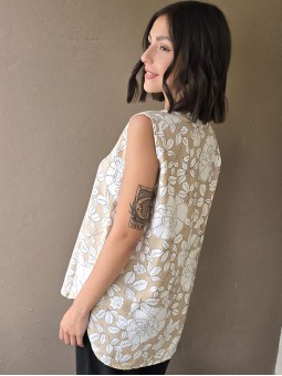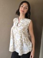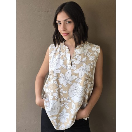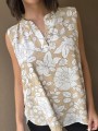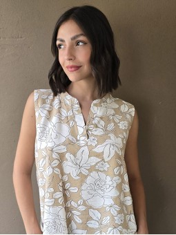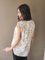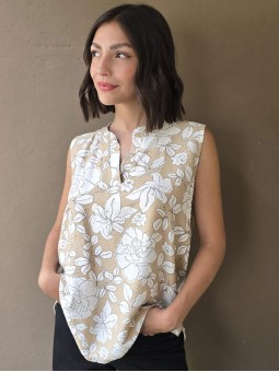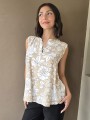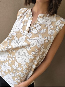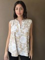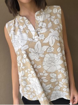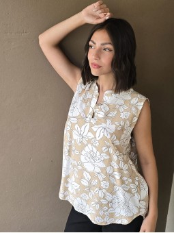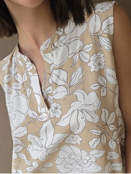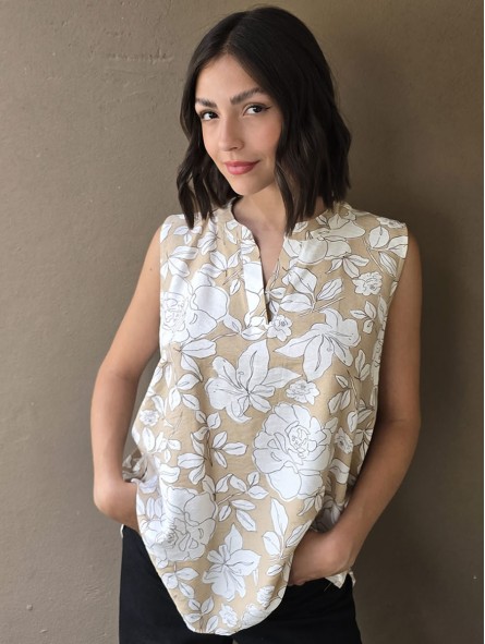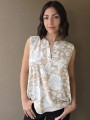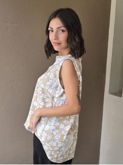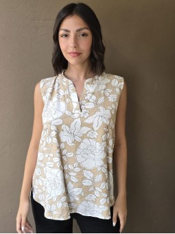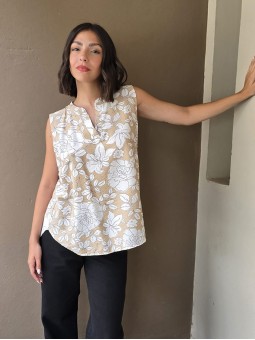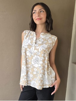 Blusa sin mangas, de gasa crush opaca estampada,con cuello chomba.