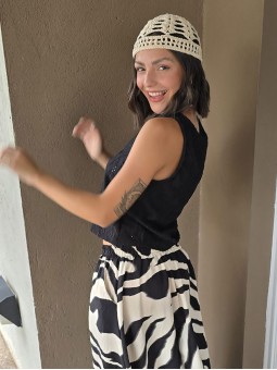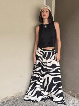 Falda súper amplia,larga de fibrana de seda, con elástico en cintura y bolsillos.