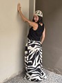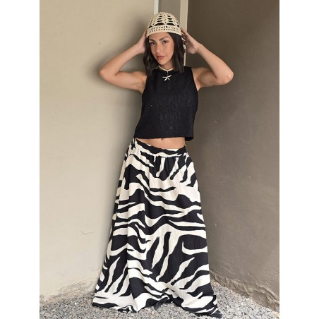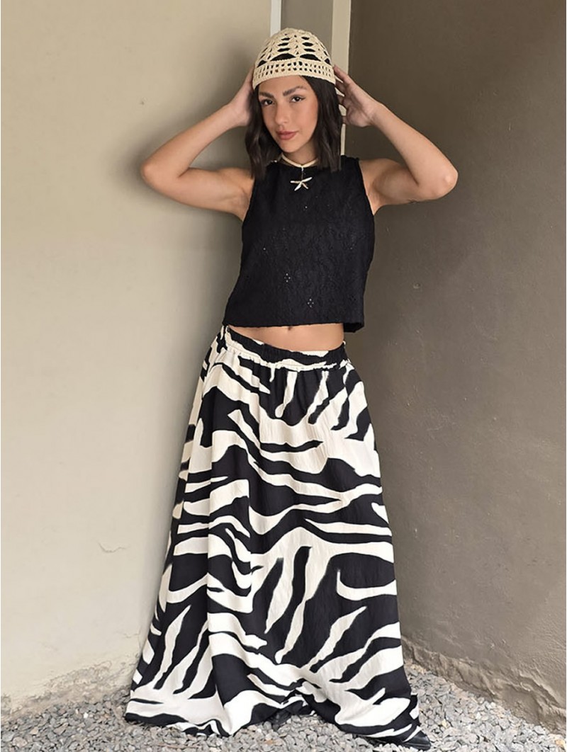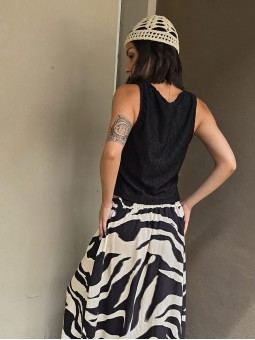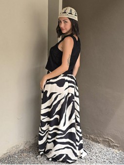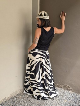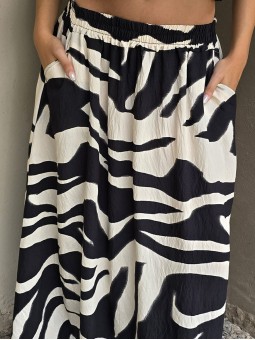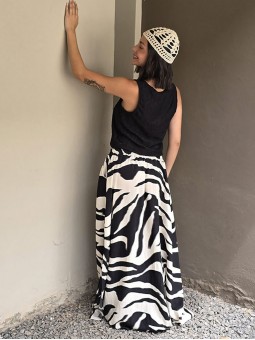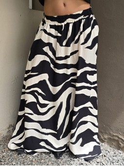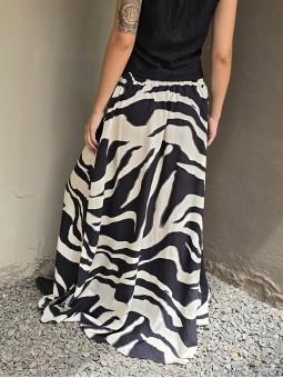 Falda súper amplia, larga de fibrana de seda, con elástico en cintura y bolsillos.