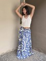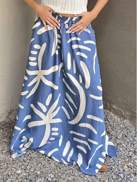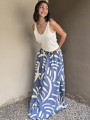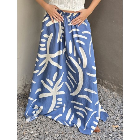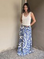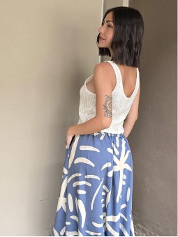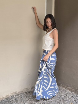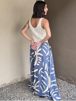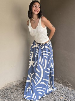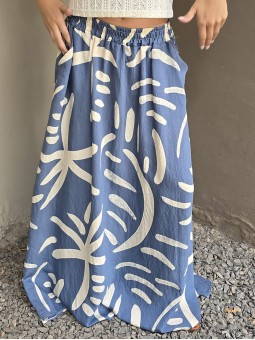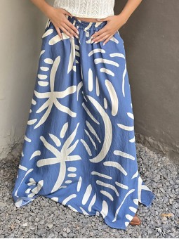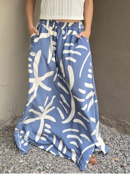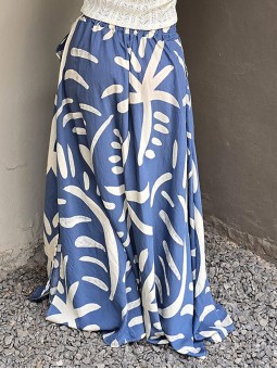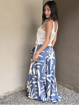 Falda súper amplia, larga de fibrana de seda, con elástico en cintura y bolsillos.