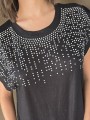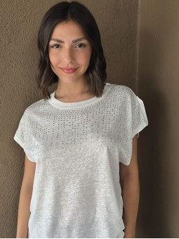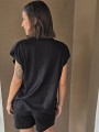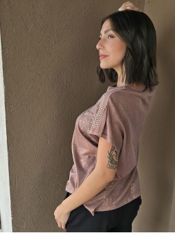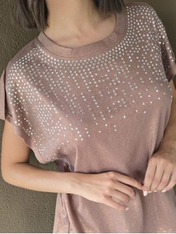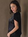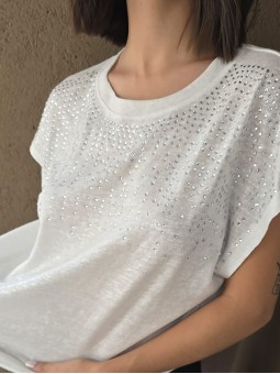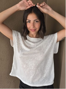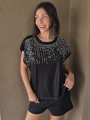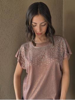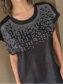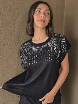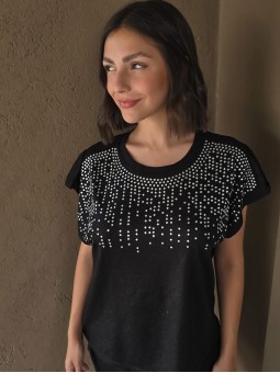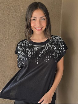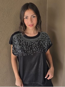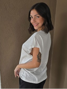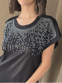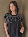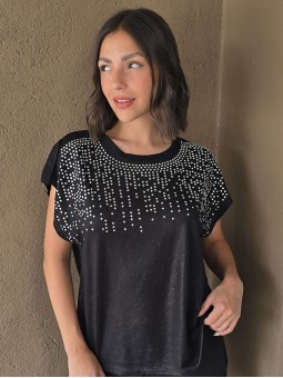 Remera manga corta, de flame foil con hot fix en delantero y detalle de tira en hombro.