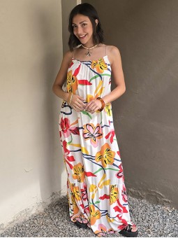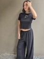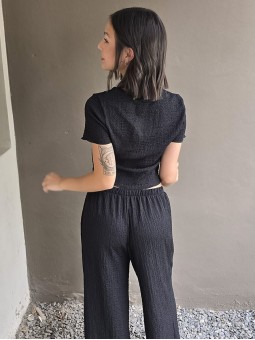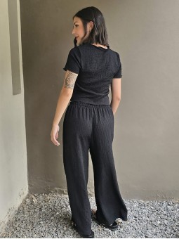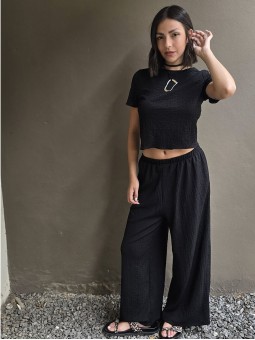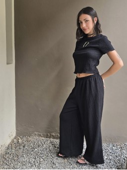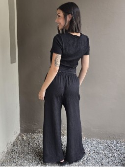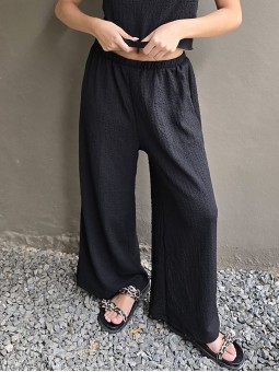 Pantalon pallazo hawai con cintura elastica y bolsillos.