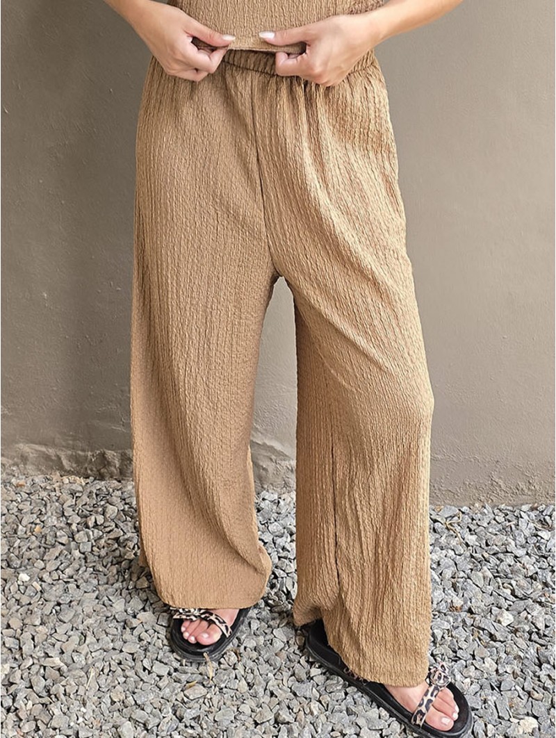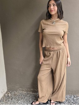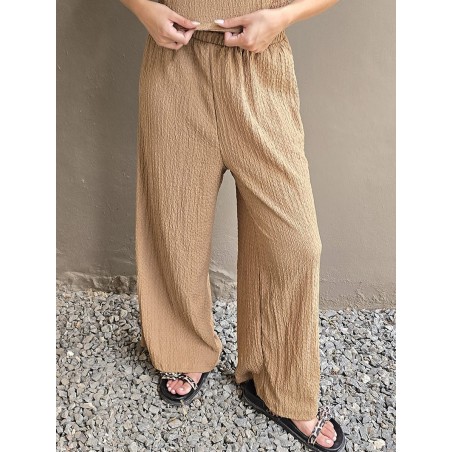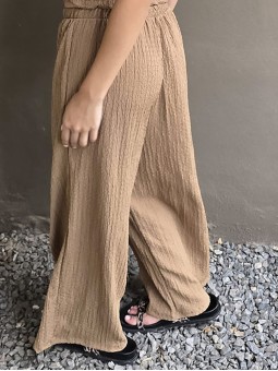 Pantalon pallazo hawai con cintura elastica y bolsillos.