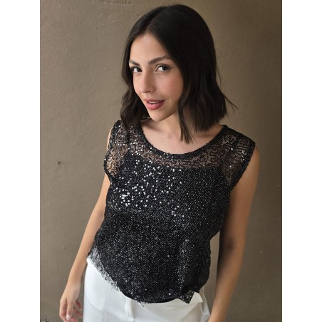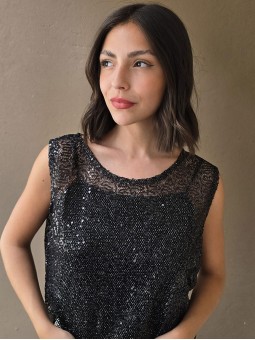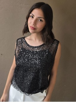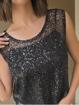 Musculosa de micro lentejuelas plateadas (no incluye el top que esta debajo)