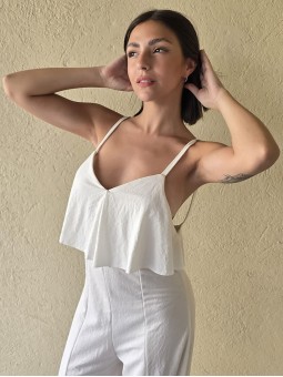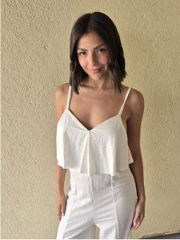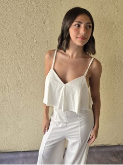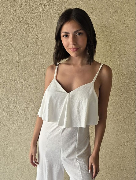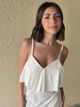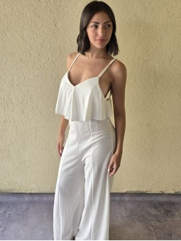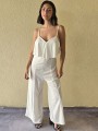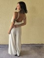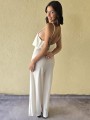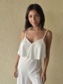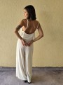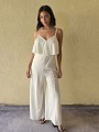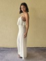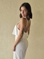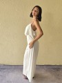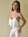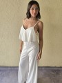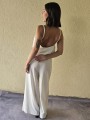 Mono largo de seda crush, con volado en el escote y breteles finos.
