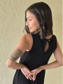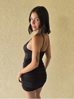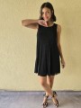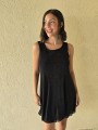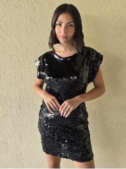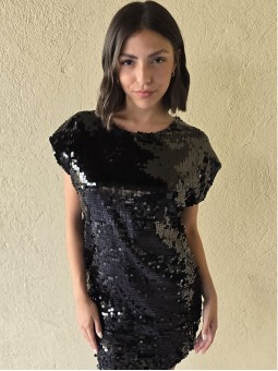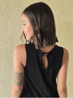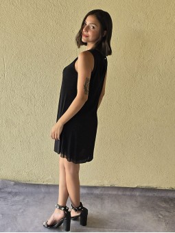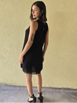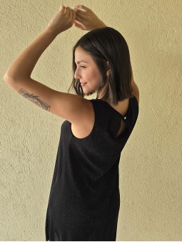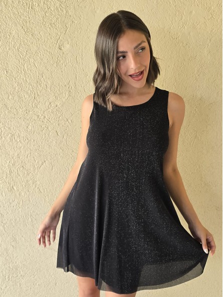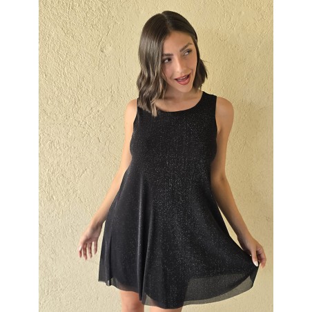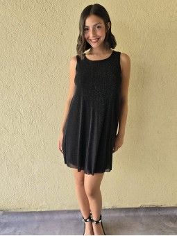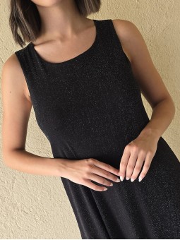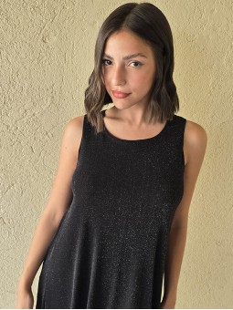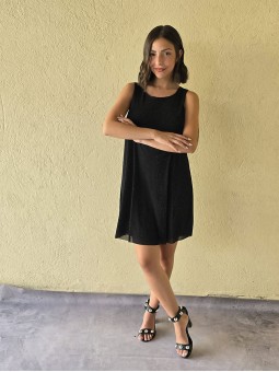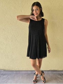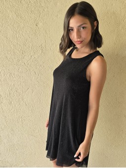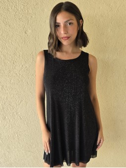 Vestido de lurex con viso interno. Detalle de botón en la espalda. Modelo amplio y cómodo.