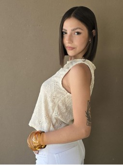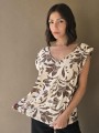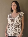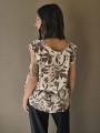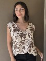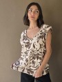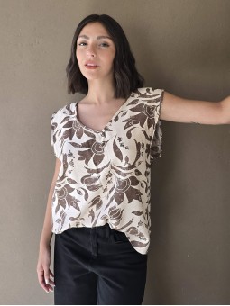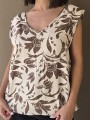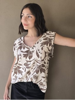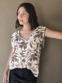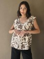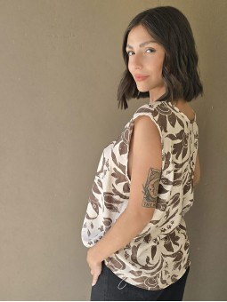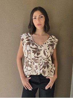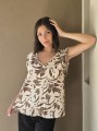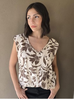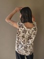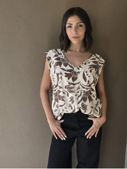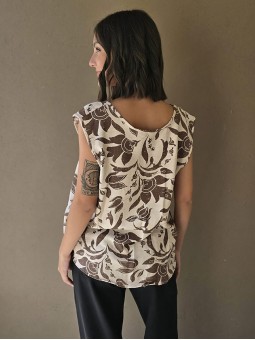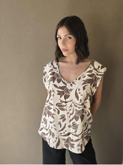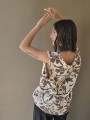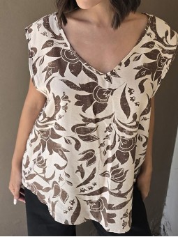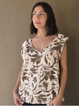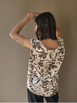 Blusa de lino con estampa en chocolate, con bretel ancho, corte suelto.