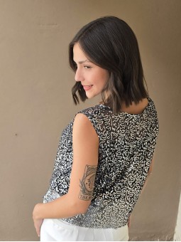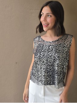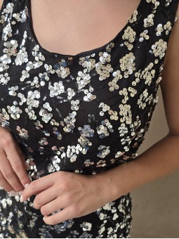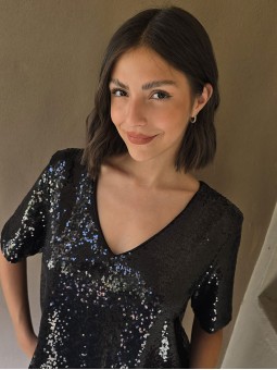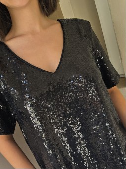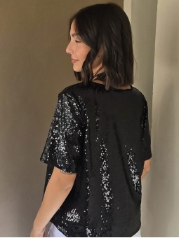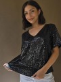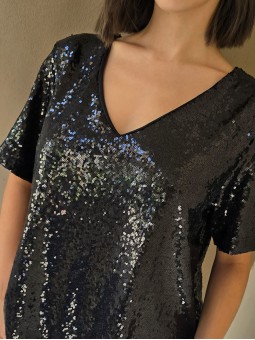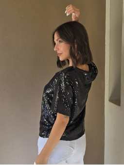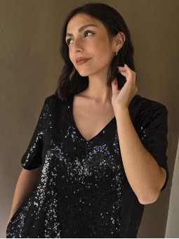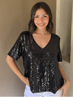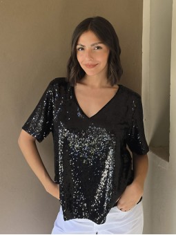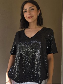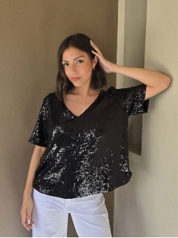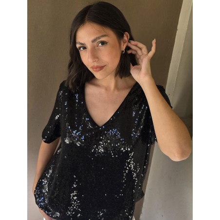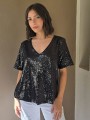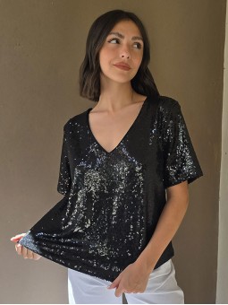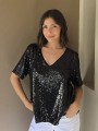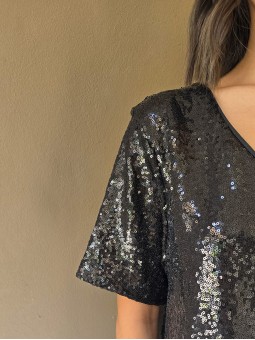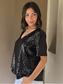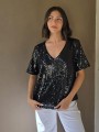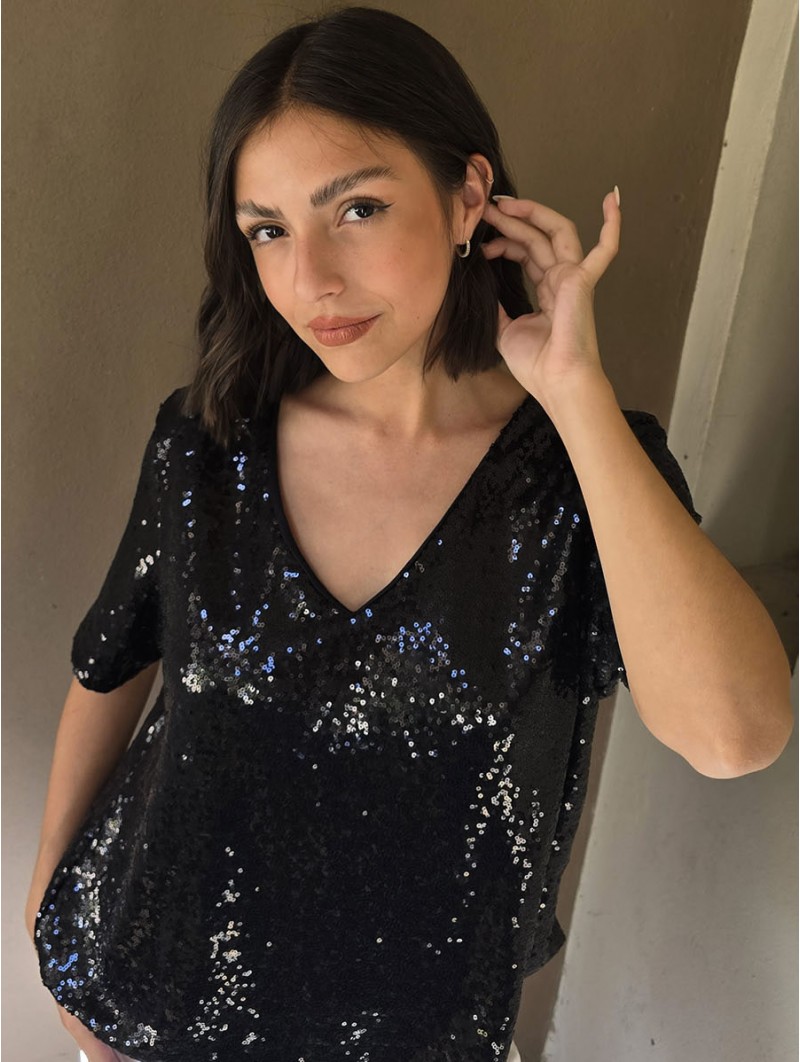 Blusa cuello V de lentejuelas, con forreria interna.