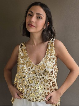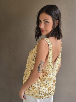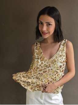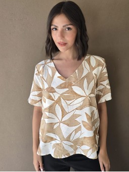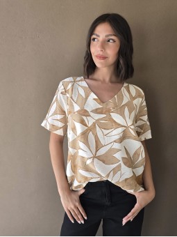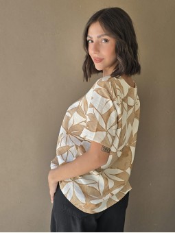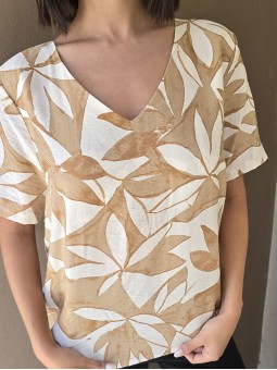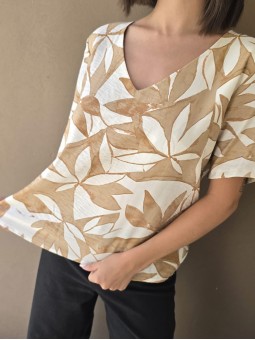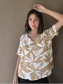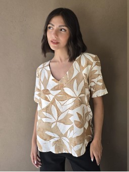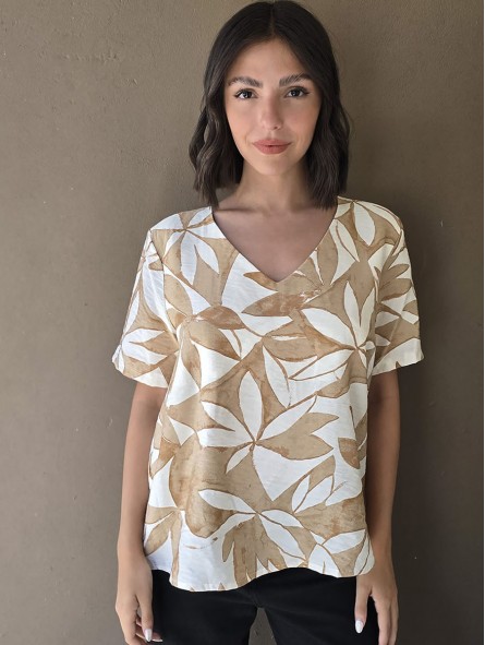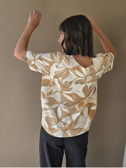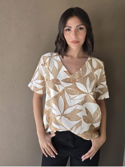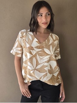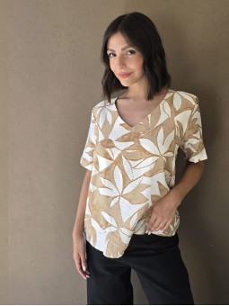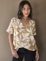 Blusa de saten crush opaco, con cuello V.