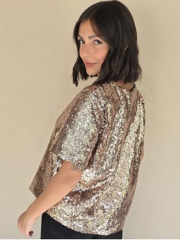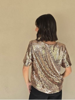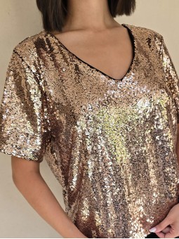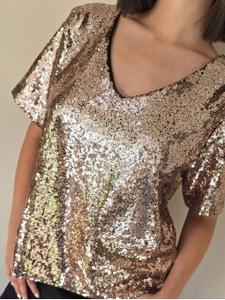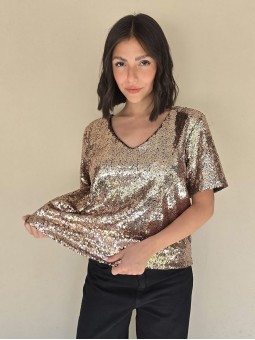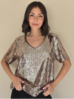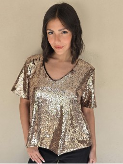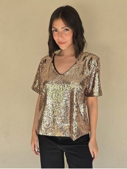 Blusa cuello V de lentejuelas, con forreria interna.