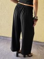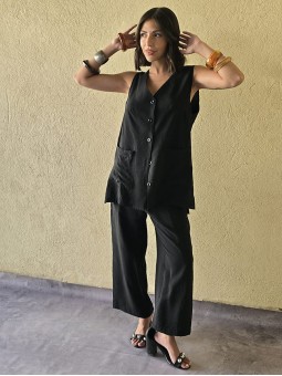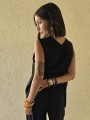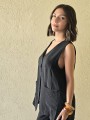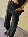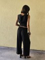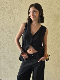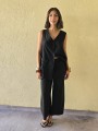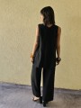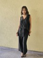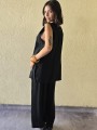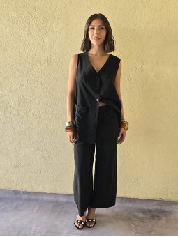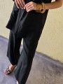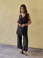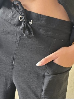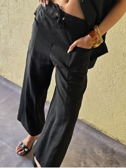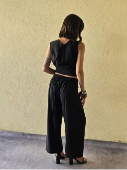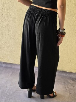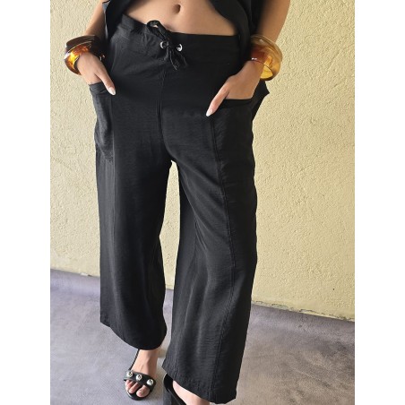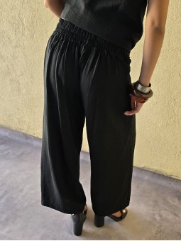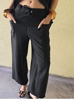 Pantalon pallazo corto (al tobillo) de seda crush, con bolsillos en delantero y cintura posterior elastizada. Cuenta con lazo delantero para regular.