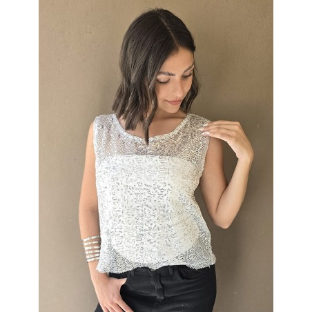 Musculosa de micro lentejuelas plateadas (no incluye el top que esta debajo)