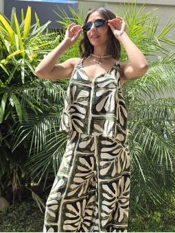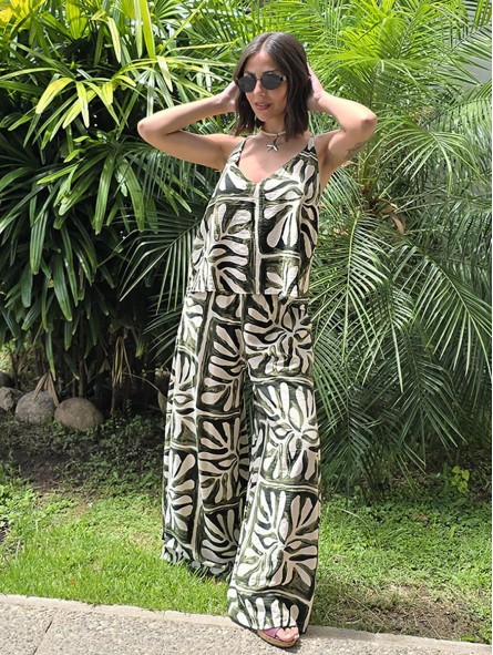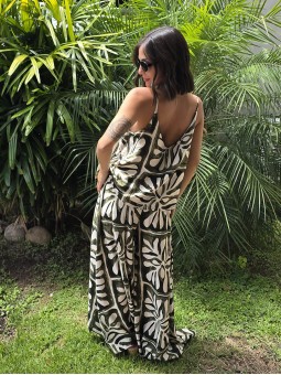 Maxipallazo de lino winoma estampado, con cintura posterior elástica.