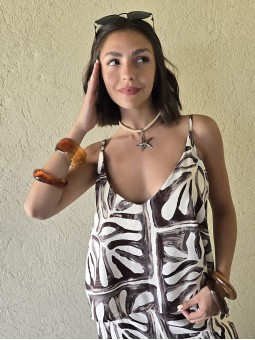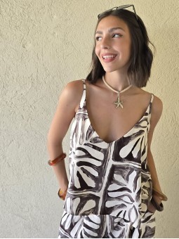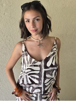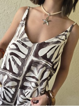 Blusa escote V, de lino winoma estampado.