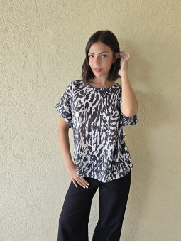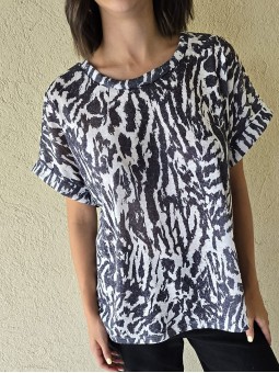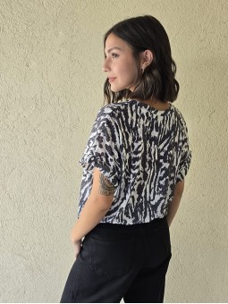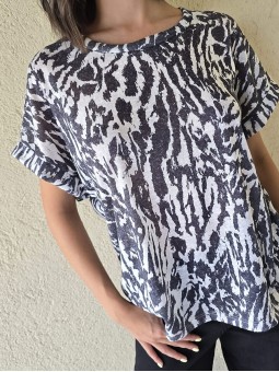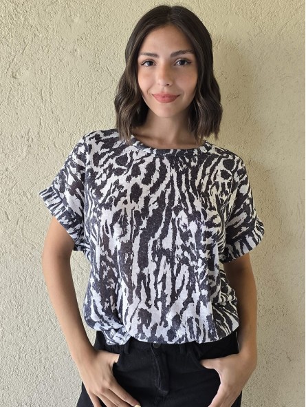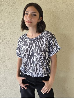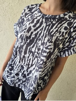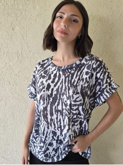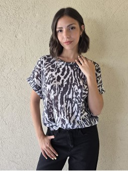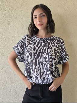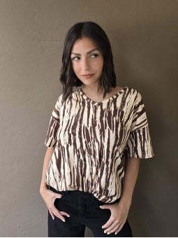 Remera de flamé de algodón estampado, de corte amplio.