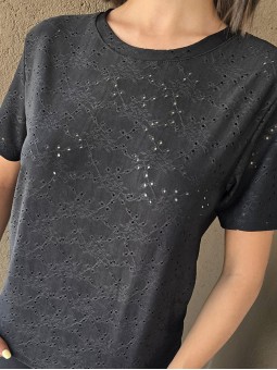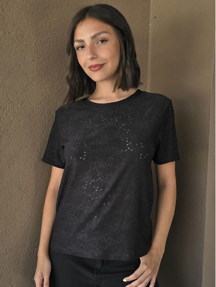 Remera manga corta de broderie.