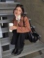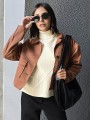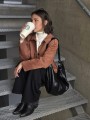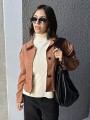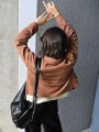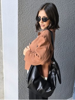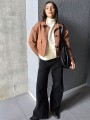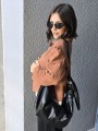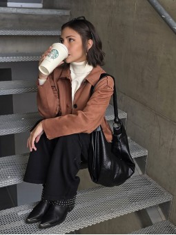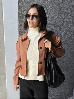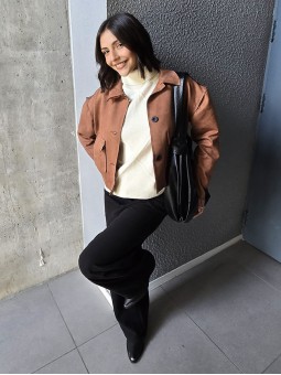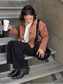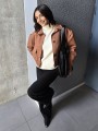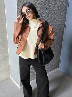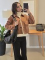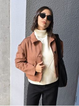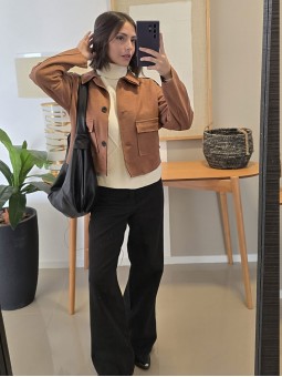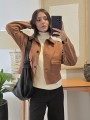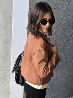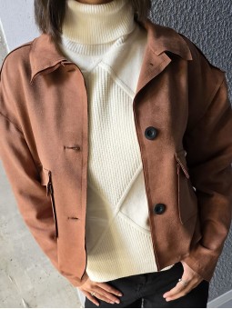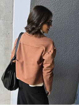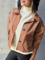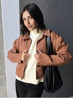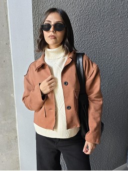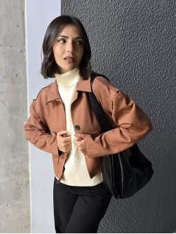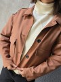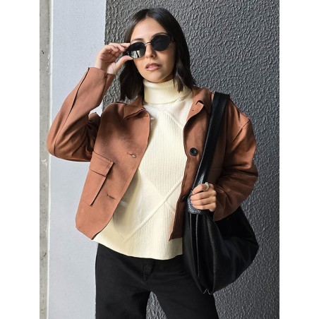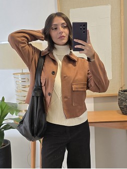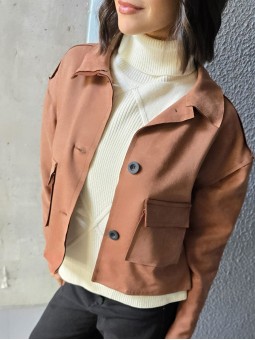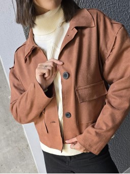 Chaqueta gamuzada con detalle de bolsillos delanteros y botones.